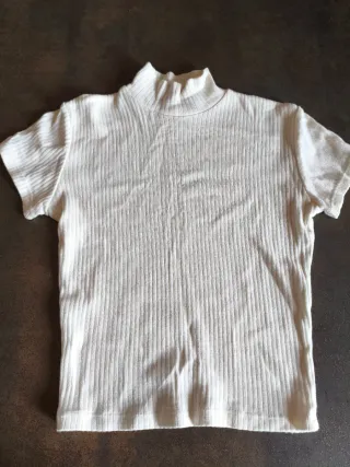 Camiseta corta de canalé con cuello alto. - Tejido elástico y acanalado. - Manga corta. - Diseño ajustado.