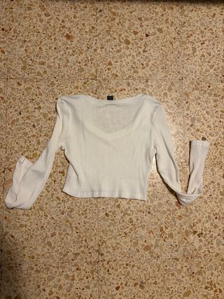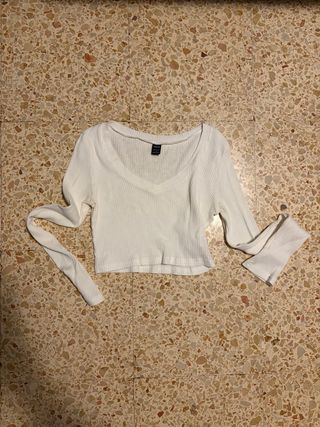 Top de manga larga con cuello estilo polo. - Diseño moderno y favorecedor. - Tejido elástico para mayor comodidad. - Manga larga con detalle. - Corte crop.
