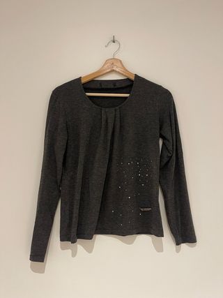 Camiseta gris manga larga con brillantes