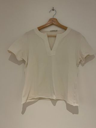 Camiseta blanca cuello pico manga corta