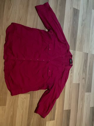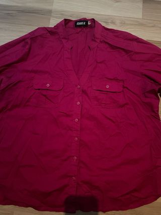 Camisa de manga larga en un vibrante tono rosa. Presenta un diseño clásico con botones frontales y dos bolsillos en el pecho. - Cuello tipo mao. - Puños ajustables. - Tejido ligero y transpirable.