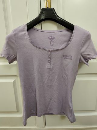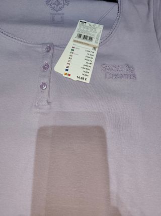 Camiseta de manga corta con un bonito diseño de women'secret, nueva con etiqueta, talla XS - Cuello redondo con detalle festoneado. - Cierre de botones en la parte delantera. - Pequeño bordado Sweet Dreams en el lateral.