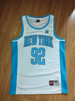 Camiseta de tirantes con diseño deportivo. - Estampado NEW YORK 92 en la parte frontal. - Paneles laterales en color azul. - Cuello y sisas con ribete azul.
