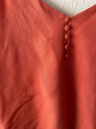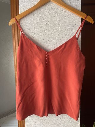 Top de tirantes para mujer con un diseño moderno y favorecedor. - Escote en V. - Detalle de botones en la parte frontal. - Tirantes finos ajustables. -Es de color rosa tostado, salmón, sin llegar a color teja, ni naranja.