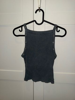 Camiseta de tirantes con un diseño moderno y cómodo. - Tejido acanalado. - Detalle de ojales en los laterales. - Bajo con acabado festoneado.