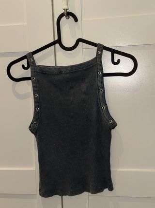 Top de tejido acanalado con un diseño moderno. Destaca por sus detalles metálicos. - Cuello redondo. - Tirantes anchos. - Tachuelas plateadas alrededor del cuello y los hombros.