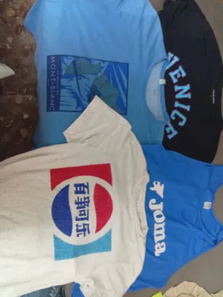 4 camisetas XL.manga corta - tirantes Joma - negra Venice - azul mont blanco - caspeado Pepsi en Japonés!!!