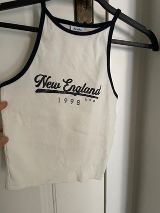 Camiseta de tirantes con estampado. - Diseño New England 1998 USA. - Ribete en contraste. Puesta solo una vez