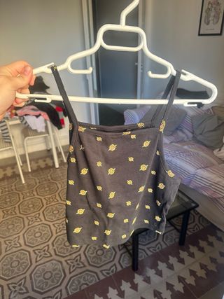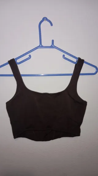 Top de tirantes con un diseño cruzado en la espalda. Es una prenda cómoda y versátil. - Tirantes finos. - Diseño cruzado en la espalda. - Largo crop.