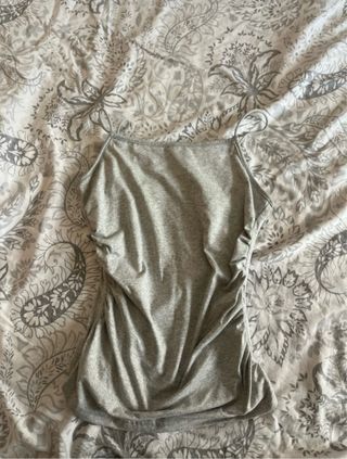 Camiseta de tirantes con un diseño cruzado en la parte delantera. Es una prenda versátil y moderna. - Tirantes finos. - Escote en V con detalle cruzado. - Corte holgado.