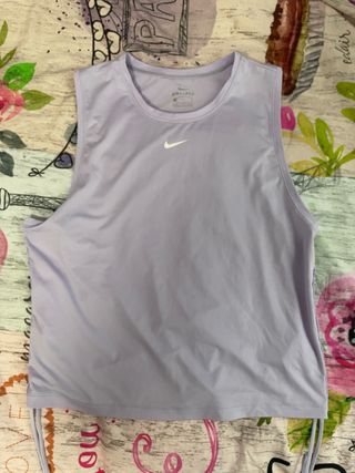 Camiseta deportiva de tirantes Nike en color lila. - Tejido ligero y transpirable. - Logo de Nike en contraste. - Diseño sin mangas. - Cordones ajustables en el bajo.