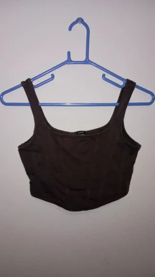 Top de corte ajustado con tirantes anchos. - Diseño tipo corsé. - Tejido elástico. - Color marrón oscuro.