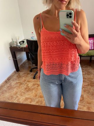 Camiseta naranja de tirantes nueva, sin estrenar, lleva todavía la etiqueta.