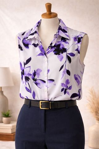 Blusa ROMAN, casi nueva, en estado impecable. Tejido ligero y fluido, ligeramente transparente, con muy bonita caída. Estampado floral en blanco y violeta (la iluminación de las fotos puede hacer que se perciban otros tonos). Sin mangas, cuello camisero y espalda ligeramente más larga para un ajuste cómodo y favorecedor. 📏 Medidas en plano: Hombros 40 cm | Axilas 58 cm Largo 64 cm delante / 72 cm detrás ➡️ Talla 16 (ver medidas). ✨ Prenda elegante y versátil, ideal para diario u oficina. 🔥 ¡No la dejes escapar! #Roman #Blusa #BlusaFloral #SinMangas #TejidoFluido #ModaMujer #Wallapop #Oportunidad