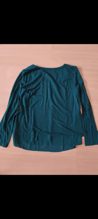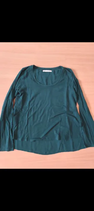 Camiseta de manga larga verde botella. Es doble, la parte de abajo es en tejido "gasa" y la de arriba en tejido algodón