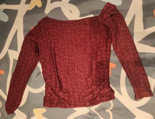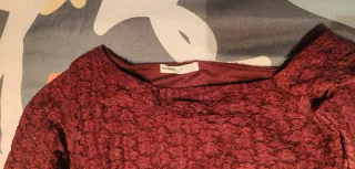 Camiseta de manga larga en color rojo. - Tejido de licra. - Cuello redondo. En la foto 4 se ve q tiene una marca. No se nota foto 5