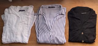 LOTE 3 CAMISAS - BLANCA mango talla XL pero talla L manga larga - NEGRA Stradivarius talla L - RAYAS Bershka talla L - Usadas un par de veces todas - Están en mi perfil por separado - Las tres 12€ - No hago envíos 📦
