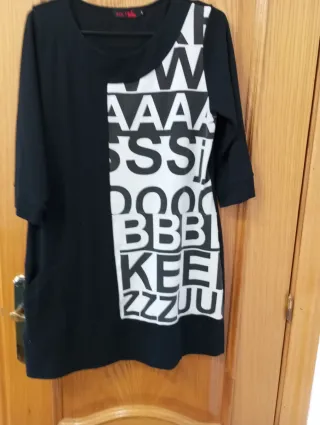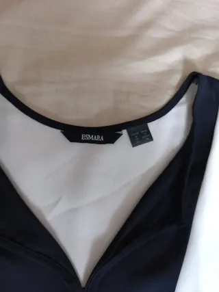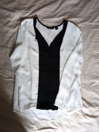 Camiseta elegante con un diseño bicolor en blanco roto y negro.Cuello en V.Manga larga.Talla S.Sin etiquetar pero sin estrenar.Es nueva