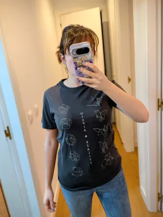 Camiseta comprada en la tienda física de pampling. Gris y estampado de origami