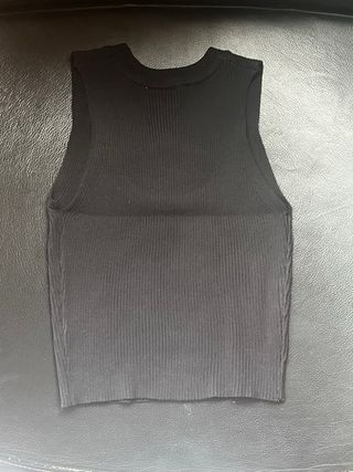Top de punto acanalado con un llamativo logo ovalado en la parte delantera. - Diseño sin mangas. - Cuello redondo. - Detalle de logo metálico.