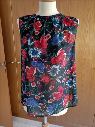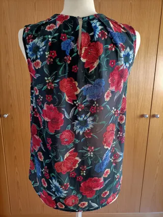 Blusa sin mangas con un bonito estampado floral. - Diseño sin mangas. - Estampado multicolor sobre fondo negro.