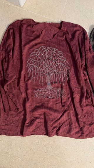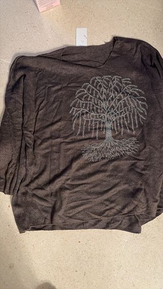 Camiseta de manga larga con un bonito diseño de árbol con pedrería. - Diseño de árbol con raíces y ramas. - Detalle de pedrería plateada en el árbol. - Tejido suave y cómodo.