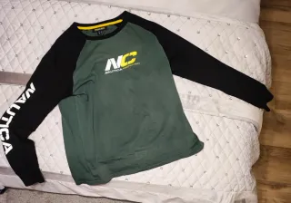 Camiseta de manga larga de la marca Nautica. Presenta un diseño con cuerpo verde y mangas negras. - Detalle de logo NC en blanco y amarillo en el pecho. - Inscripción NAUTICA COMPETITION debajo del logo. - Logo de Nautica en blanco en la manga izquierda.