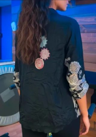 Camisa de manga larga con un bonito estampado floral. -Diseño de flores en varios tonos. - Cuello camisero. - Cierre de botones. -Talla M De sisa a sisa 48cm De largo 60cm