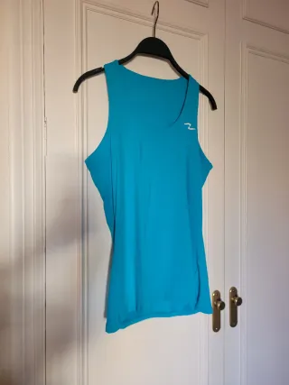 Camiseta deportiva Nafta en color turquesa, ideal para pádel o entrenamiento. - Diseño sin mangas. - Logo de la marca en blanco