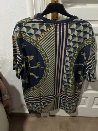 Camiseta de manga corta con un diseño llamativo y original. - Estampado geométrico y de cadenas. - Detalle de figuras nadando en la parte inferior. - Cuello redondo.