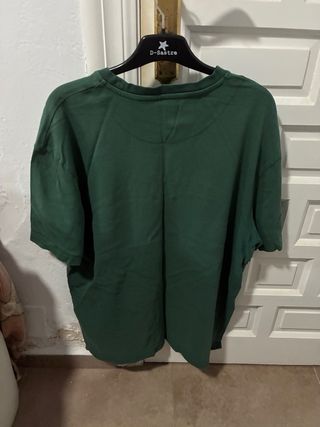------Camiseta de manga corta con pequeño agujero en la parte de abajo nose nota mucho------ - Cuello redondo. - Logo distintivo en el pecho. - Ribete interior en contraste.