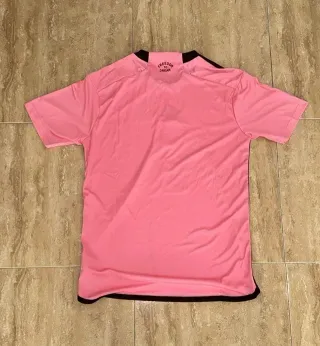 Camiseta de fútbol con diseño moderno y detalles llamativos. - Cuello tipo polo. - Mangas cortas con ribete. - Paneles laterales en contraste. - Logo de la marca en el pecho. - Escudo del equipo bordado.