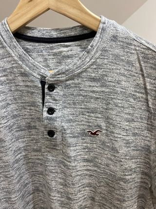 Camiseta de manga corta con cuello Henley y detalle de botones. - Tejido jaspeado. - Pequeño logo bordado en el pecho.