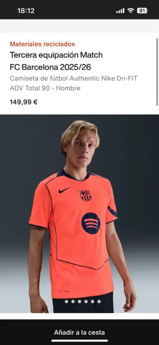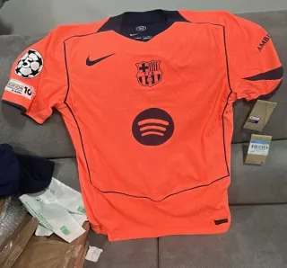 Camiseta oficial de la tercera equipación del FC Barcelona para la temporada 2025/2026. Diseño clásico en naranja con detalles en azul marino. - Escudo del FC Barcelona bordado. - Logo de Nike. - Logo de Spotify. - Parche de la Champions League. - Inscripción AMB en la manga.