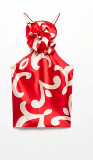 Top de Mango con un bonito estampado floral. - Diseño halter. - Detalle de volante en el escote. - Tirantes finos. Nuevo con etiqueta