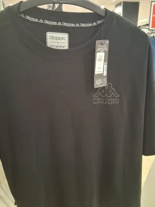 Camiseta negra de la marca Kappa, ideal para chica. - 100% algodón. - Logo de Kappa en el pecho. - Cuello redondo. - Manga corta. - Aberturas laterales en el bajo