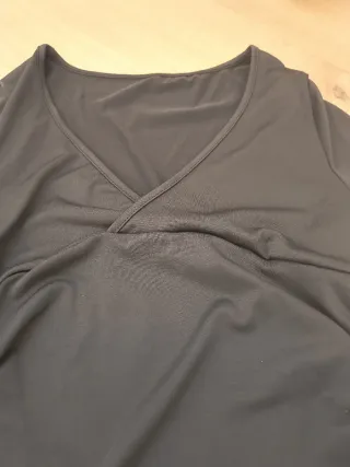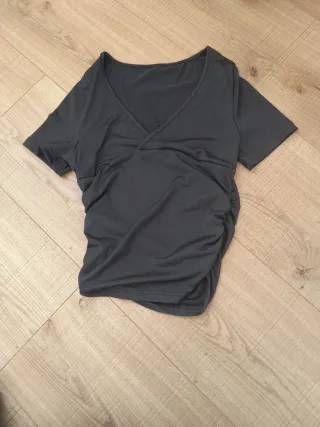 Camiseta de manga corta con escote en pico y detalle fruncido en el lateral. - Tejido elástico de licra. - Diseño cruzado en la parte delantera.