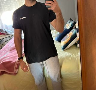 Camiseta negra de manga corta para hombre. - Logo de Adidas en blanco. - Tejido ligero y transpirable. - Precio negociable