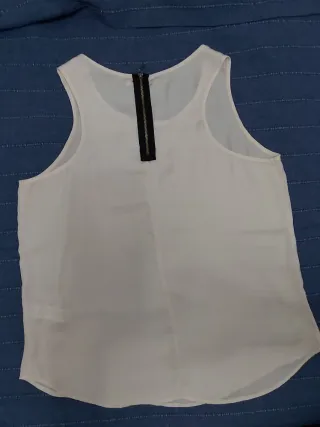 Camisa sin mangas de color beige, ideal para el verano. Presenta un detalle de pequeña cremallera en la parte trasera. - Diseño sin mangas. - Cremallera trasera.