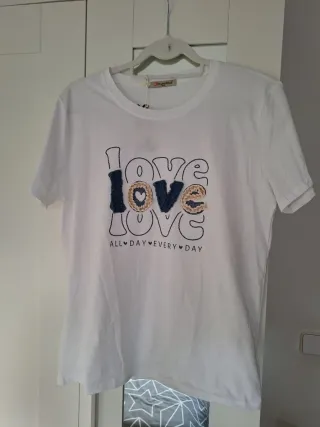 Camiseta de manga corta con un diseño divertido y original. - Estampado frontal con tela aplicada y detalles bordados. - T/ 44 a 48 - Cuello redondo.