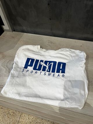 Camiseta blanca con el logo de Puma Sportswear. - Logo de Puma en azul. - Diseño de manga corta.