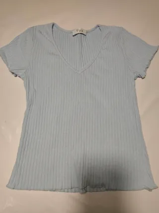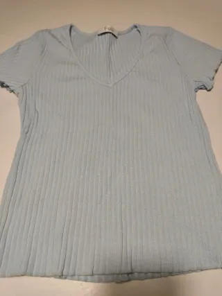 Camiseta de manga corta con tejido acanalado y cuello en pico. - Diseño ajustado. - Tacto suave. - Acabado elástico.