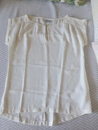 Blusa elegante de manga corta. Talla XS. - Cuello redondo con abertura. - Detalle de botón en la abertura. - Tejido ligero y fluido. - No hago envíos por menos de 5€.