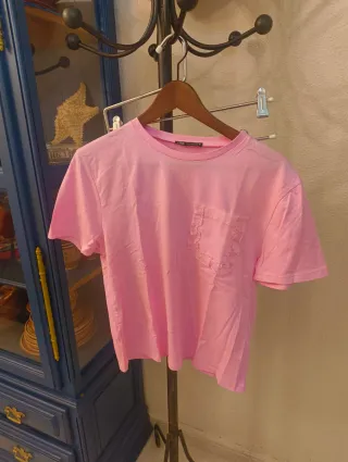 Camiseta de manga corta con un diseño moderno y ajustado. - Detalle de letras TRUCCO en la parte delantera. - Cuello redondo. - Tejido elástico. Muy cómodo. - Muy buena calidad. - Nueva, sin estrenar, con etiqueta y bolsa de embalaje.
