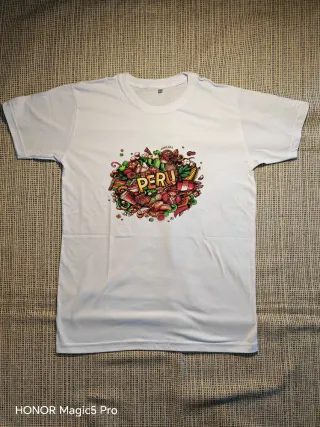 Camiseta con estampado Peru y diseño inspirado en la cultura peruana. - Diseño multicolor. - Cuello redondo. - Manga corta.