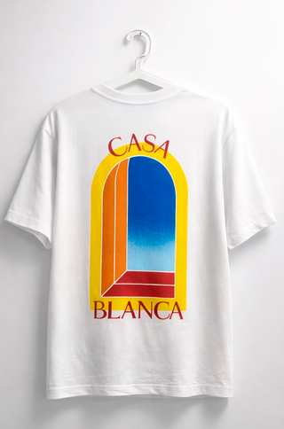 Camiseta de la marca Casablanca en color blanco. Presenta un diseño gráfico en la parte frontal. - Diseño gráfico con arcoíris y texto. - Cuello redondo. - Manga corta.