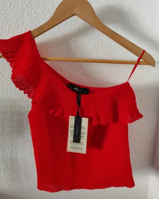 Top de Mango. Nuevo con etiqueta 🏷️ - Detalle de volante. - Diseño asimétrico. - Tejido ligero.