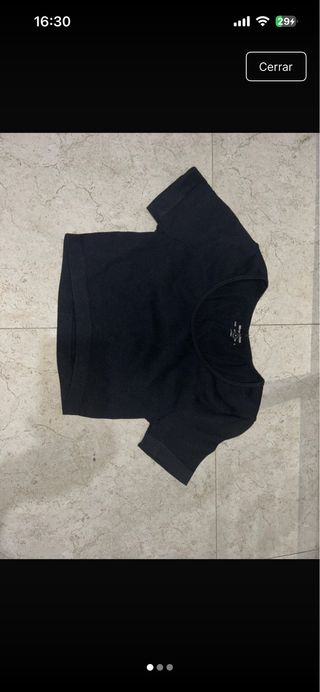 Camiseta negra de manga corta. -Escote redondo - Diseño ajustado. - Tejido elástico.
