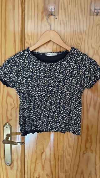 Camiseta de manga corta con estampado. Muy buena calidad. - Diseño con motivos florales blancos. - Cuello redondo.