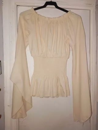 Blusa de manga larga con un diseño elegante y favorecedor. - Escote elástico. - Cintura fruncida. - Mangas acampanadas.